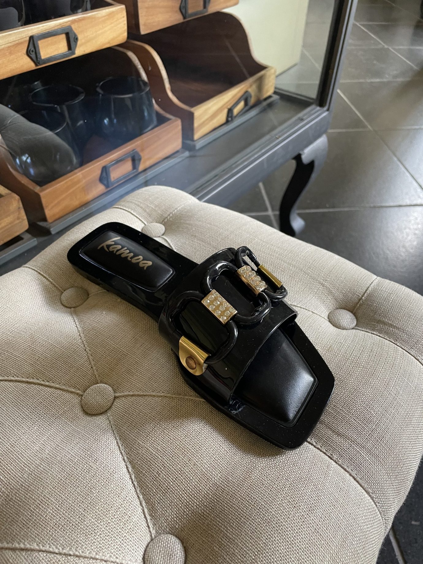 Entdecken Sie die ultimative Kombination aus Stil und Komfort mit unserer eleganten Damen-Pantolette mit exquisiter Goldverzierung. Hergestellt aus hochwertigem Material, vereint sie zeitlose Eleganz mit modernem Chic. Die goldene Verzierung verleiht jedem Schritt einen Hauch von Luxus, während die gepolsterte Sohle für den ganztägigen Tragekomfort sorgt. Perfekt für die Badesaison oder um Ihrem Alltagslook einen Hauch von Glamour zu verleihen. Gönnen Sie sich das Beste und treten Sie mit Stil auf!